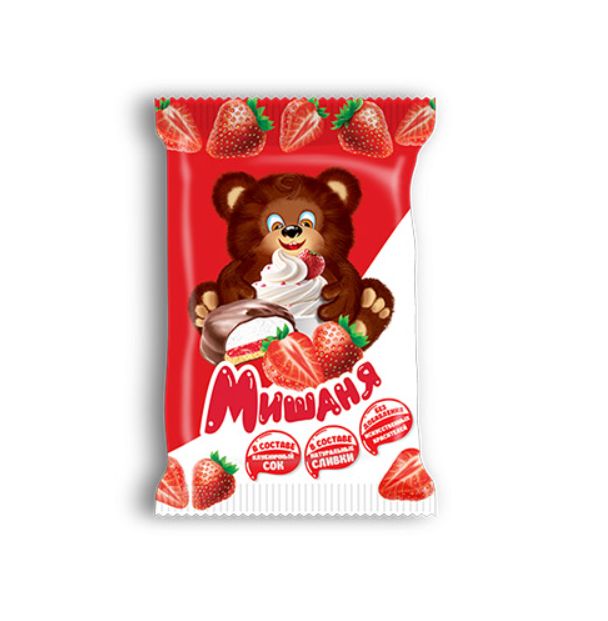 Ароматное печенье, наполненное сочной клубничной начинкой в сочетании с воздушным сливочным суфле, покрытое молочной глазурью.