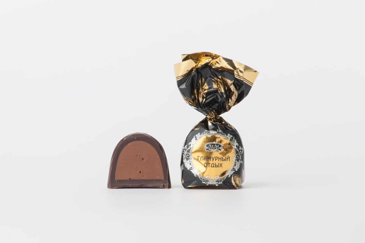 Конфеты куполообразной формы в кондитерской глазури с тёмной пралиновой начинкой и добавлением натурального ароматизатора: «Меринги сухие».