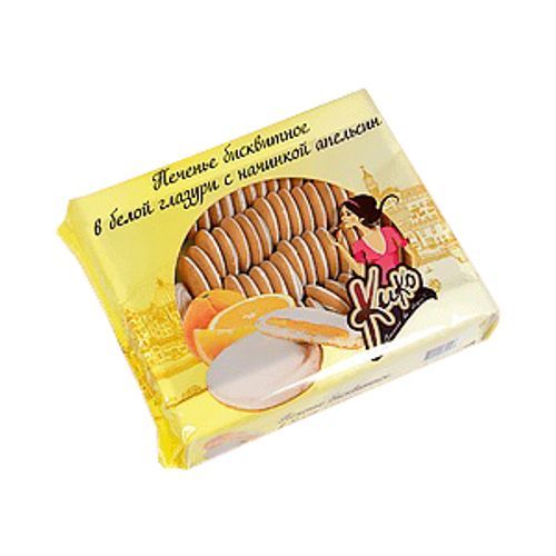 Бисквитное печенье с желейной апельсиновой начинкой в белой глазури