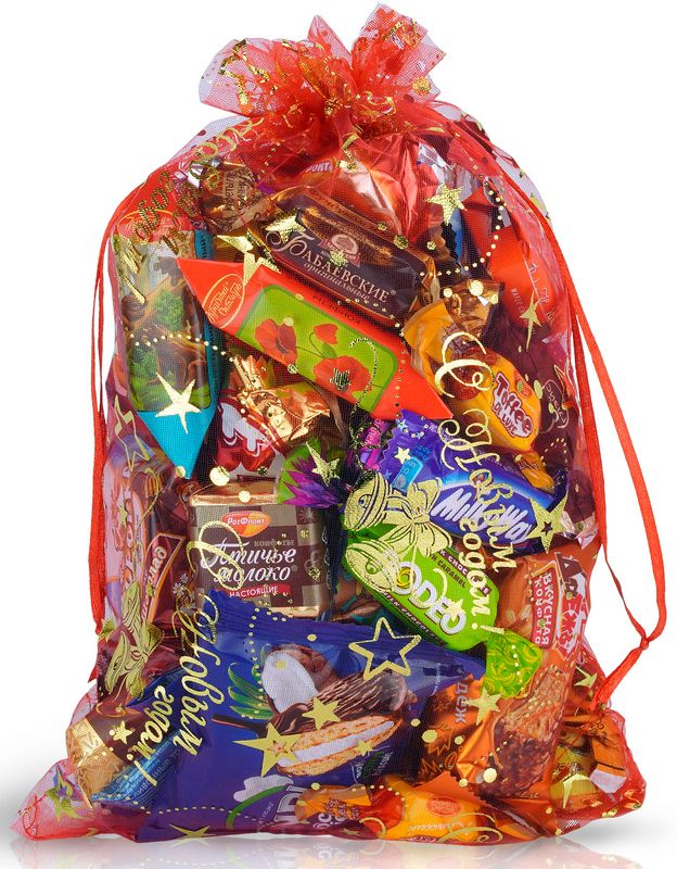 Мешочек Новогодняя снежинка (органза) (красный) (на 1500г) (МСУПК) 100