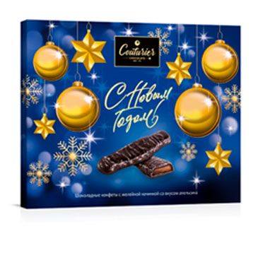 Новогодние коробки с длинными мармеладными конфетами «Jelly» - мармеладные батончики в темном шоколаде со вкусом апельсина.