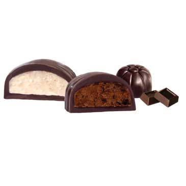 В коробке собраны 3 вида конфет с начинками с добавление дробленого фундука, миндаля и кофе.