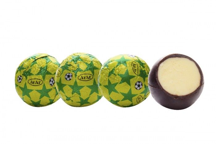 Конфеты сферической формы в кондитерской глазури со светлой нежной начинкой со вкусом «Фейхоа».