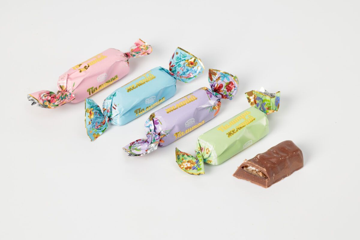 Конфеты в форме батончика в фирменной молочной глазури с нежной трюфельной начинкой с добавлением ароматного джема и хрустящей крошки печенья, со вкусами: лимон, апельсин, клюква, вишня.