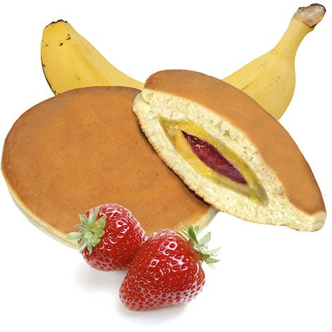 Нежные оладушки из мягкого бисквитного теста с начинкой со вкусом "Клубника-Банан".