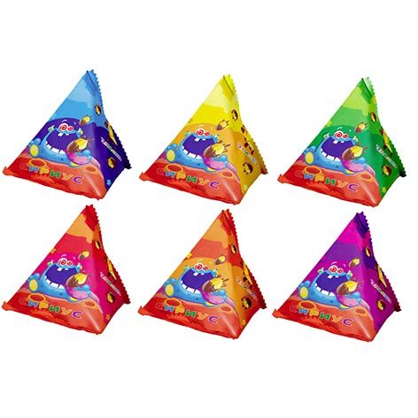 Драже цельный арахис с нежной начинкой, сахарной корочкой в кондитерской глазури с какао. Необычная индивидуальная упаковка в форме пирамиды. В одной индивидуальной упаковке около 20 гр. калиброванных драже