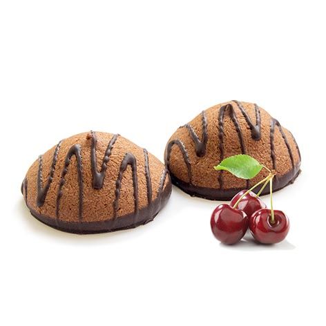 Мягкое шоколадное печенье с вишнёвой начинкой и глазированным дном, декорированное шоколадной глазурью