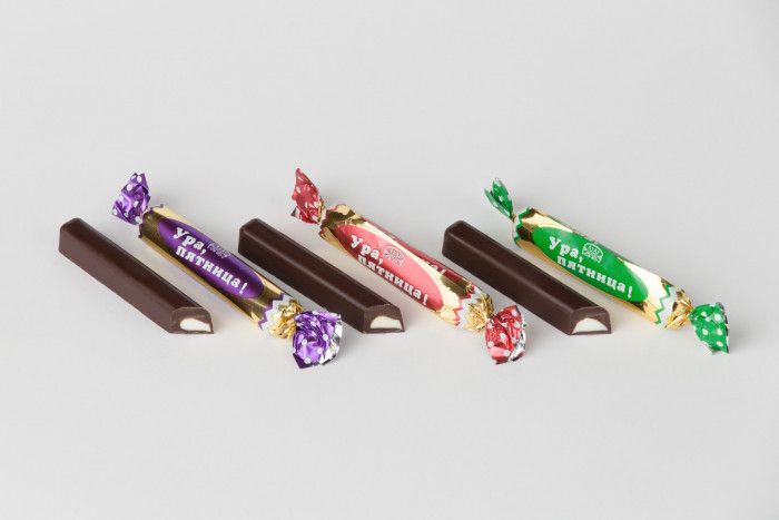 Конфеты в форме палочек в фирменной глазури со вкусами: «Вареная сгущенка», «Карамелизованное молоко», «Творожный крем».