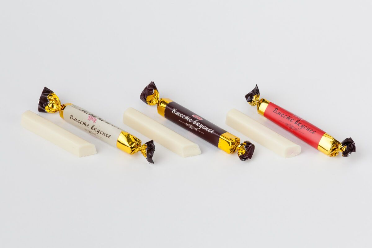 Конфеты в форме палочек в фирменной белой глазури со вкусами: «Вишня», «Сыр Маскарпоне»,«Ванильно-сливочный».