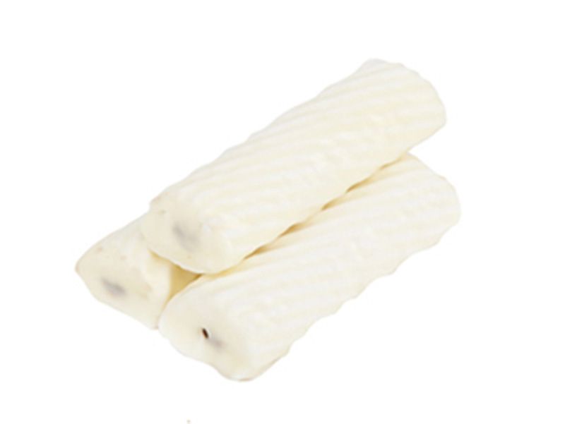 Зефирные палочки с начинкой со вкусом варёного сгущенного молока в белой глазури.